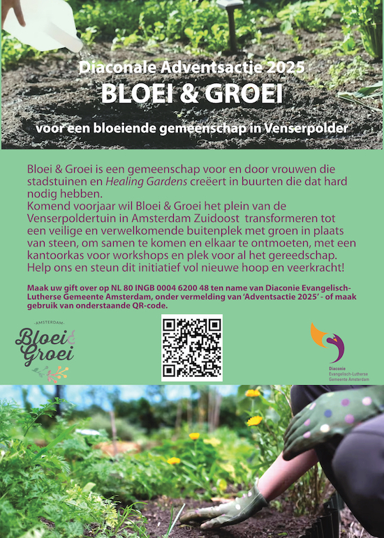 ten name van Diaconie Evangelisch-Lutherse Gemeente Amsterdam, onder vermelding van 'Adventsactie 2025' - of maak gebruik van de QR-code hiernaast.
