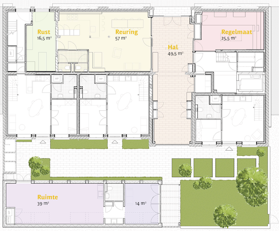 Twee ruimten zijn bedoeld voor verhuur, bij voorkeur aan vaste verhuurders zodat er stabiliteit is en de druk op de leefgemeenschap niet te groot wordt. De twee andere ruimten kan de leefgemeenschap zelf gebruiken, bijvoorbeeld voor buurtgerichte initiatieven.